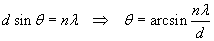The surface of a sample of nickel is irradiated with electrons accelerated by a potential of 54 volts. The parameter d, measured by the X-ray diffraction, has value 2.15·10-10 m.