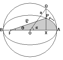In the Cartesian system with origin O and axes coincident with the axes of the ellipse, the distance FO has measure ae and the abscissa x is common to the points P and Q.