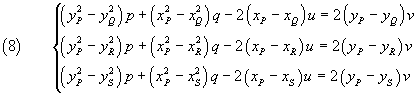 The system (8) allows you to express p, q, u and, consequently, also α and β, as functions of v. By substituting these expressions in any of the equations of the system (4), we can determine v and then the values of p, q, α and β.