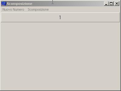 Si torni ora alla definizione del menu. Si definisca, con i metodi già esposti, un menù principale e si inseriscano in esso gli items MnNuovoNumero con Caption &Nuovo Numero e MnScomposizione con Caption &Scomposizione.