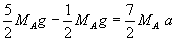 Il segno positivo dell'accelerazione indica che il sistema slitta in senso antiorario: B cala, A sale.
