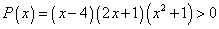 Il fattore di secondo grado è costantemente positivo, dunque non influisce sul segno del prodotto. È quindi sufficiente studiare il segno del prodotto dei fattori di primo grado. Tale prodotto equivale ad un trinomio di primo coefficiente positivo (2) e di zeri