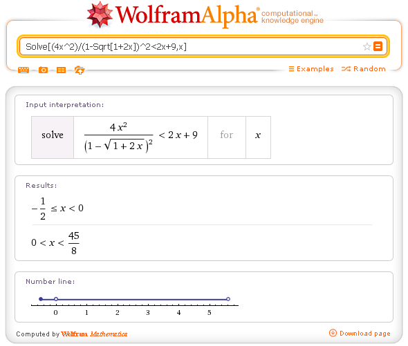 Soluzione della disequazione con WolframAlpha