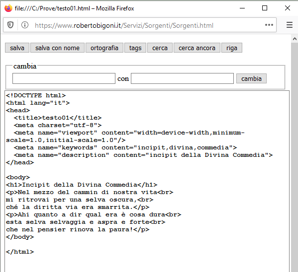 Questa applicazione può risultare utile nella redazione di sorgenti per HTML, Javascript, CSS, XML, TXT.