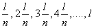 Let B' be the projection of B on the abscissa axis and l the length of OB'. Let's divide OB' in n equal segments. The abscissa of the right ends of these segments will be