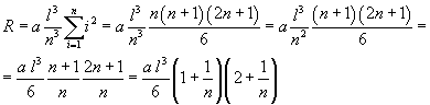 The bigger n is, the lesser is the difference between R and the area S of the figure delimited by the segments OB' and B'B and by the arc OB of γ (a mixtilineal triangle). We can express this asymptotic tendency saying that