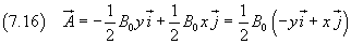 La (7.12) può aiutare a comprendere il senso fisico del potenziale A. Infatti nel caso di un campo di induzione magnetica B0 uniforme e costante