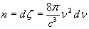 Il numero n di possibili valori distinti della loro energia h ν per unità di volume per frequenze comprese tra ν e (ν+dν) può essere ottenuto dal differenziale di questa espressione: