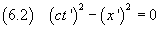 Come s`è visto al paragrafo 5 la trasformazione che lascia invariata la differenza tra i quadrati delle coordinate è la rotazione iperbolica (5.8). In questo caso, nella (5.8), x va sostituito con (ct) e y va sostituito con x: si ottiene