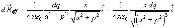Dato che la carica simmetrica rispetto al centro produce in P un campo analogo ma con componente y opposta, di questo campo è efficace solo la componente x che si ottiene moltiplicando il modulo per il coseno di α (rapporto tra ascissa e distanza). Il campo efficace determinato da dq in P è quindi