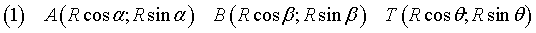 i raggi OA, OB e OT formano, rispettivamente, gli angoli α, β e θ con il verso positivo dell'asse x;