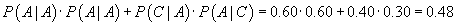 Indicando con P(A|A) la probabilità condizionata che un titolo aumenti dopo essere aumentato il giorno prima, con P(C|A) la probabilità condizionata che un titolo cali dopo essere aumentato il giorno prima, e con P(C|C) e P(A|C) gli altri casi analoghi si ha la seguente tabella