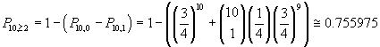La probabilità che almeno due risposte siano corrette è la probabilità complementare alla somma di queste due: