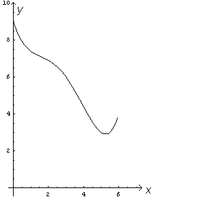 La derivata prima è non positiva, per 0≤x≤5 ed è positiva per 5<x≤6. Dunque f è non crescente nel primo intervallo e crescente nel secondo. Ha quindi un minimo assoluto per x=5.