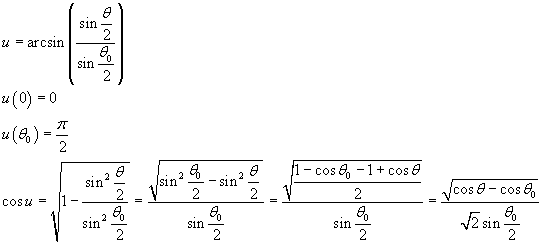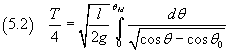 Indicando con T il periodo del pendolo, cioè la durata di un'oscillazione completa, la durata della discesa da θ0 a 0 risulta