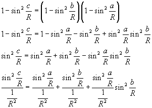 Gli angoli nei denominatori coincidono con gli angoli nei vertici del triangolo sferico, mentre quelli nei numeratori sono dati dai rapporti tra i lati del triangolo sferico e il raggio. Dunque