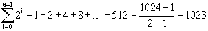 La somma delle prime dieci potenze di 2, cioè da 1 a 29 è